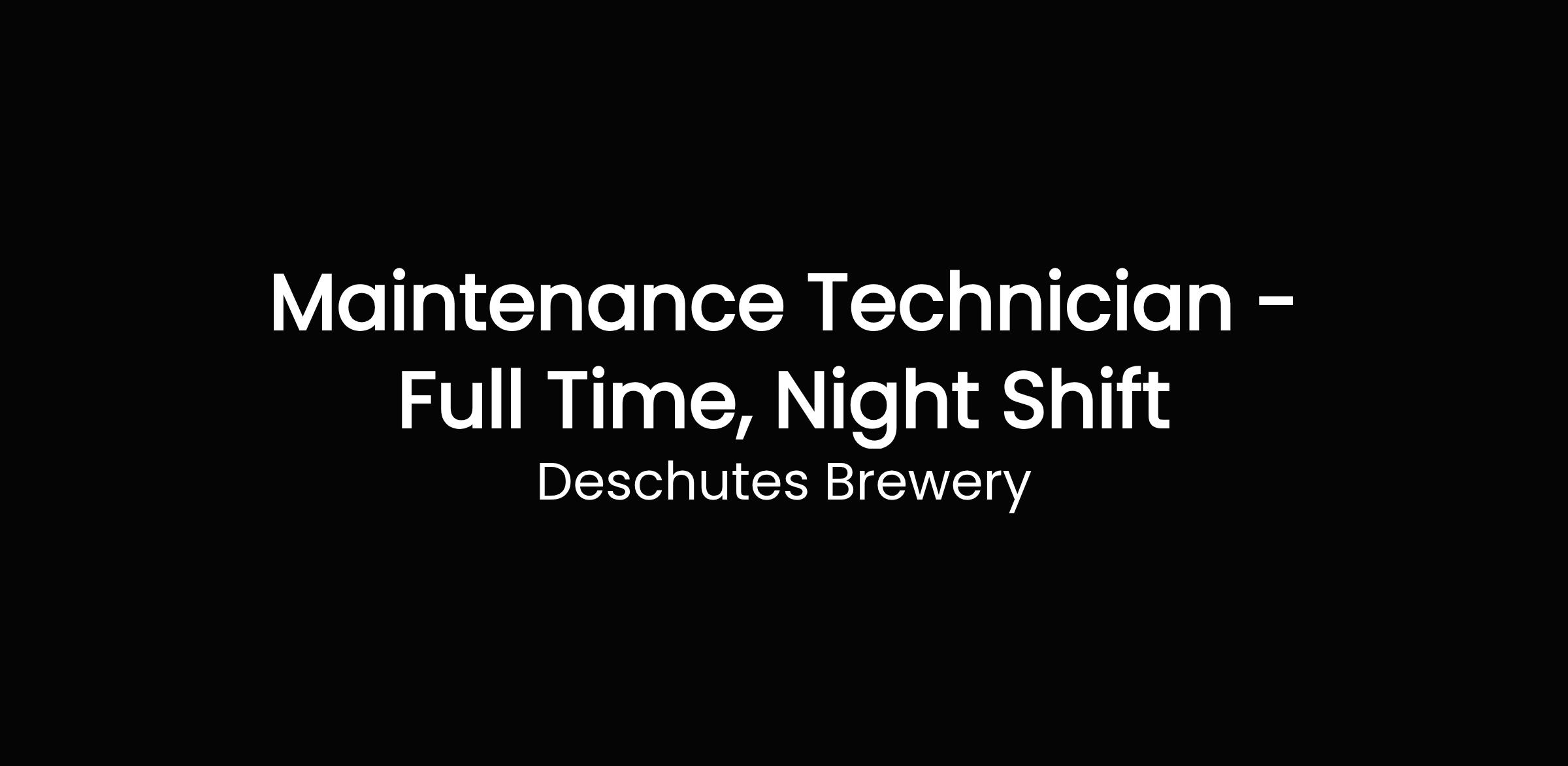 Deschutes Brewery is currently hiring for a Full-Time Maintenance Technician! The typical schedule for this role is 4-10s (10 hour shifts, 4 days a week) from 7pm to 5:30am; actual schedule will be based on business need, and will include weekend shifts. Compensation offered to the candidate hired into this role depends on previous experience, skills and education/certifications and starts at a minimum of $25.25 per hour, with an additional $3.00 per hour more for night shift differential (for any hours worked between 6pm and 6am). This position offers a career path up to $37.30 per hour for our Maintenance Tech employees who successfully complete our internal training program and hold several years of experience working for us. Additionally, we offer more opportunities for wage increases also associated with cross-training, promotional opportunities and trade specialization (i.e. LME, Journeyman Electrician, HVAC, etc.)