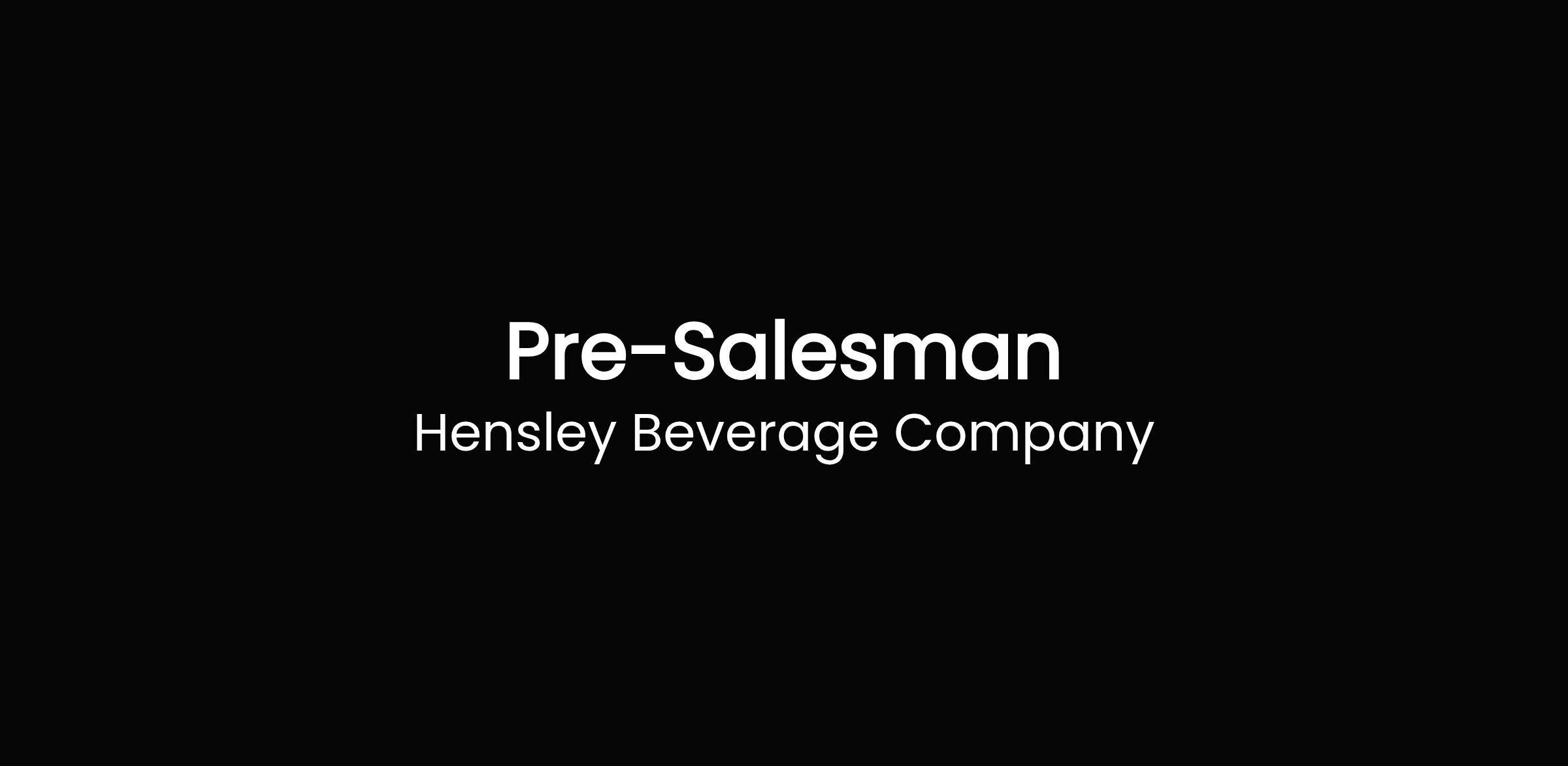 Hensley Beverage Company is looking for a skilled Salesperson. In this role you will be responsible for the sales and merchandising of products and providing excellent customer service to our customers.