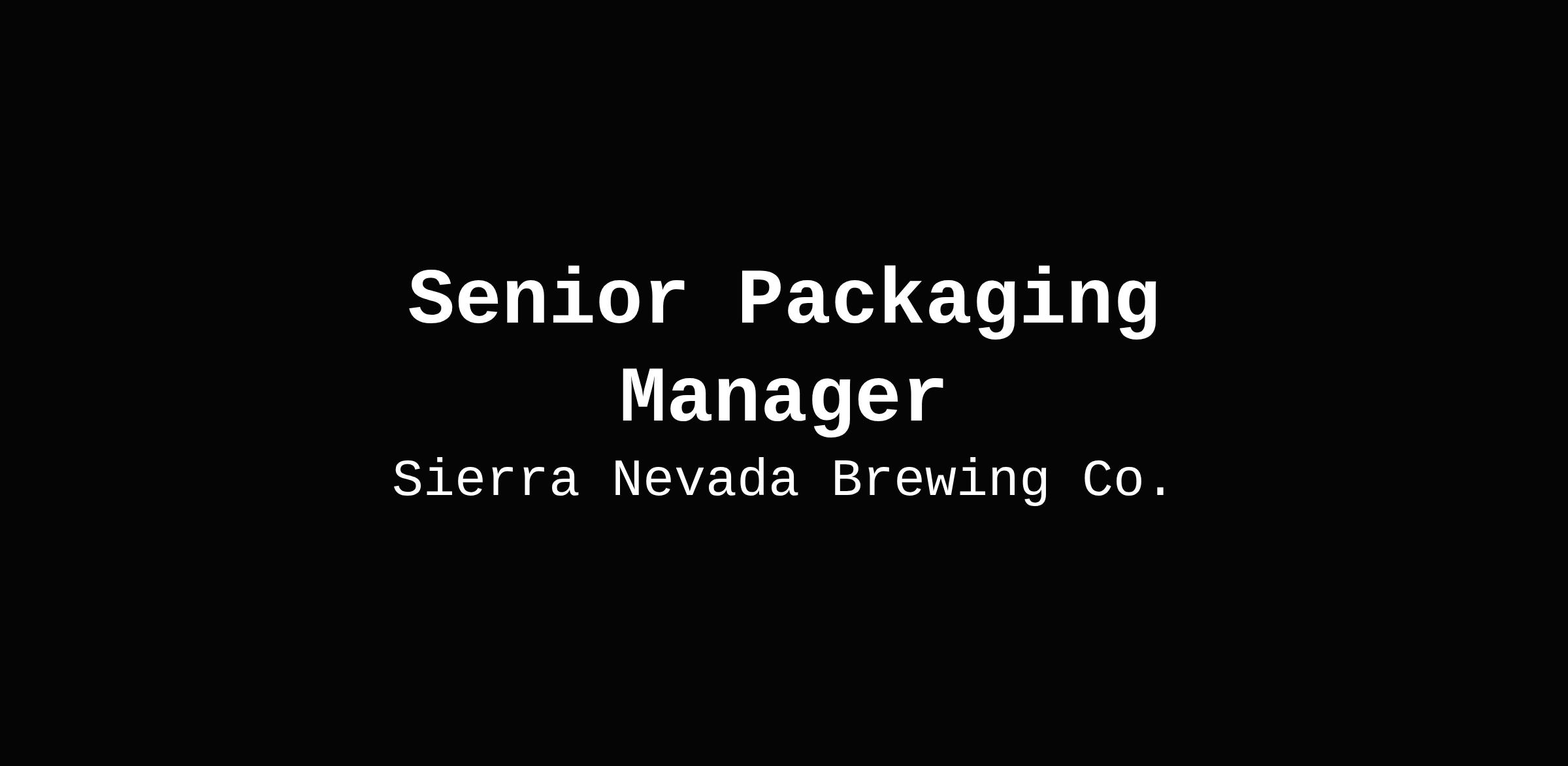 Get to Know This RoleThe Sr Manager, Packaging will have a strategic role in the planning and coordinating of all packaging, inventory, and shipment related operations. This role oversees the packaging department and is responsible for delivering packaged product in accordance with production schedules, achieving OEE and loss targets, and meeting SNBC's quality standards. This role is also responsible for Co-packing operations including the supervision of staff, and partnering with the warehouse manager to coordinate packaging and warehouse efforts related to co-packing in coordination with all core managers operations team.